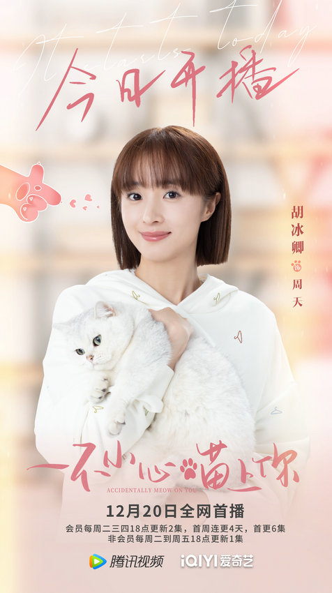 由企鹅影视出品的萌宠爱情网络剧《一不小心喵上你》于12月20日正式登陆腾讯视频、爱奇艺播出。胡冰卿饰演周天,开启新手经纪人职场历练之路。《一不小心喵上你》讲述了一段由萌宠猫咪带来的欢喜冤家甜怼逗趣的爱