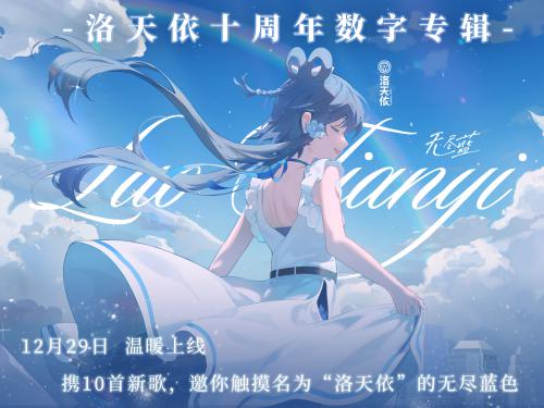 12 月 29 日,虚拟歌手洛天依十周年原创数字专辑《无尽蓝》于全网同步发行,专辑一经上线即获得用户们的关注。早在 12 月 24 日洛天依 B 站直播中,就首次释出了十周年专辑的试听单元,随后上架 B 站会员购的实体版专辑也受到了大众的支持。