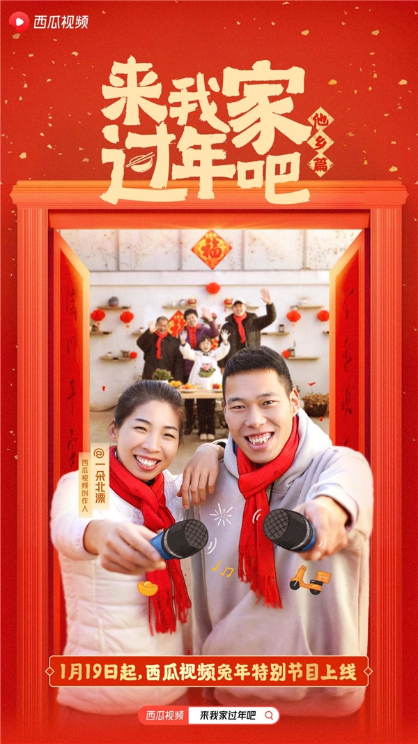 在“看视频”版块,西瓜视频上线春节特别栏目《来我家过年吧》。旅行创作人@小白的奇幻旅行 将前往不同省份的创作人家中,吃春节美食,逛当地风光,展现了不同地域的“人间烟火”。定居四川的创作人@小万姑娘 带领小白逛汉服工作室,一起做兔子灯。而年夜饭环节,@小万姑娘 选择了当地最具代表性的美食“火锅”。江苏创作人@乡村小乔 ,则邀请小白逛棉被厂。两人为纺织工人们送上鸡鸭鹅等年货。乡村小乔还带着小白吃糕茶,抓鹅,一起品尝江淮农村的美食。截至1月28日,《来我家过年吧》系列视频播放量超过1200万。