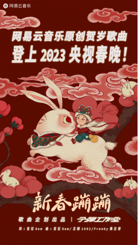 2023年1月21日,由网易云音乐企划出品,网易子弹工作室与著名歌手宝石Gem共创的原创贺岁歌曲——《新春蹦蹦》成功登上央视春晚舞台,为全国人民送去了自己的新春祝福。
