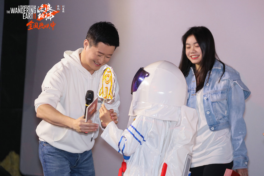路演现场能够感受到观众们的空前的热情,有人带来了亲手制作的地球模型蛋糕,还有粉丝带来了自己制作的册子送给主创,上面收录了154个人给郭帆导演写的信,这些人来自天南海北,年龄也从小到老,这种来自观众的真心反馈令人动容。网上还有初中生为UEG制作了网站,上面内容丰富、详尽、细致,导演也回应希望官方也可以加入进去在这个基础上共同建立世界观。现场还有飞行学员发言:“刘培强临危不惧的大无畏精神令人感动,希望吴京老师给我们这些即将毕业的飞行员说些什么。”吴京表示向飞行员致敬,并希望他们能注意安全。