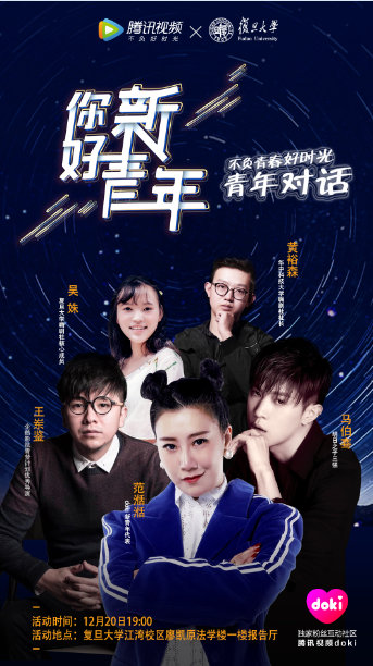 什么是新时代下的新青年?12月20日晚,腾讯视频将联合复旦大学举办“你好,新青年——不负青春好时光”的青春对话主题活动。据悉,doki新青年代表范湉湉、“明日之子”人气选手马伯骞等多位优质嘉宾均会出席现场,与新青年分享自己的人生经验。不知道一向以“毒舌”著称的范湉湉和“嘻哈届清流rapper”马伯骞会碰撞出怎样的花火?