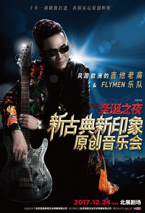 2017年12月24日,由北京蓝色影视文化传媒有限公司主办出品,北京宝韵文化艺术发展有限公司执行的“2017吉他老高新古典新印象音乐Party”将在北展剧场盛大举行。经过十余年的潜心磨炼与精致打造,由吉他老高独创的“新古典新印象”音乐不仅给当代乐坛带来了电吉他音乐的强劲原创新风,也给广大吉他乐迷带来了与众不同的艺术享受,更给吉他老高的铁杆粉丝们带回追忆青春的悸动,同时也给这些关注吉他老高多年的老粉们带来全新的“见面礼”!