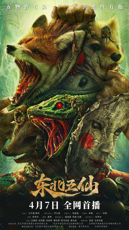 由王中磊、栗坤担任出品人,尹兴良担任联合出品人,胡俊逸担任总制片人,李晨担任制片人、总策划,李亚东执导,娄燕编剧的民俗惊悚悬疑电影《东北五仙》正式定档,将于4月7日全网首播。影片今日曝光了定档预告及海报,由王奎荣、安泽豪、范雷、萧松原、字马妘奕、何其炜、崔永炫、王李丹鈮、路顺、王飞等主演。