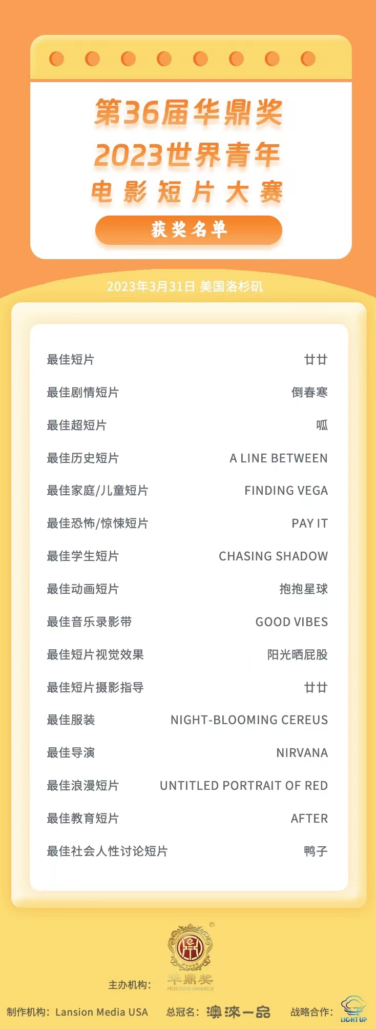 第36届华鼎奖好莱坞开奖,世界青年短片大赛重磅揭晓