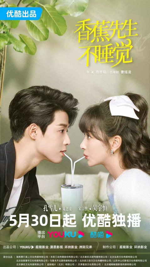 由杨世韬执导,青年演员孔雪儿、吴宇恒领衔主演,郁葱、潘麓宇、杜亚飞、陈云汐、张琛、李芷欣、金曼等人共同主演的都市偶像甜宠剧集《香蕉先生不睡觉》正在优酷热播中。