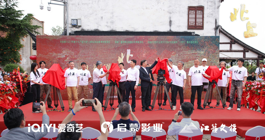 5月31日,由爱奇艺、启蒙影业、江苏文投出品的电视剧《北上》在江苏开机发布。作为中宣部2023年度文化产业发展专项资金推动影视发展项目、国家广播电视总局重点电视剧项目、国家发改委大运河文化保护传承利用“十四五”重点推进项目、江苏省重大题材文艺创作资助项目,江苏省广播电视局精品扶持项目,以及中央电视台2023“大剧看总台”推介剧目,电视剧《北上》凝聚了社会各界的广泛关注,得到了各级党委政府、各主管单位的亲切指导和大力支持,开机发布现场,《北上》剧组成立了临时党支部,充分发挥党员精神和模范带头作用,鼓舞人心振奋士气。江苏省委宣传部、江苏省广播电视局相关领导,江苏文投、爱奇艺、启蒙影业的主要负责人莅临现场并致辞发言,要求剧组主创在拍摄制作过程中坚守人民立场,坚持守正创新,坚持弘扬正道,“用情用力讲好发生在江苏的中国故事”,期许创作团队从大运河涌动的民族文化浪波中饱蘸墨彩,抒写生生不息的人民史诗,将《北上》打造为能够深度满足人民文化需求,增强人民精神力量的精品力作。