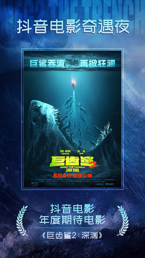 《巨齿鲨2:深渊》抖音电影奇遇夜荣获「抖音电影年度期待电影」